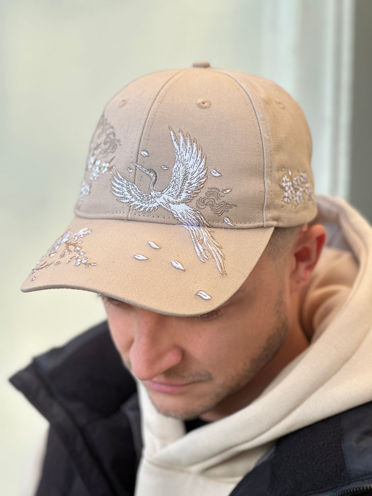 Sakura Crane Embroidered Cap - Unisex - Sakura Sand