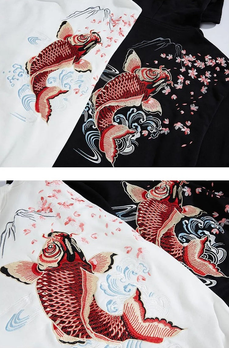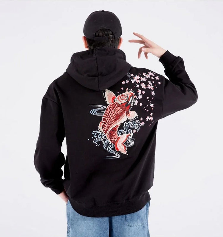 Embroidered Koi Fish Unisex - Japanese Streetstyle Hoodie