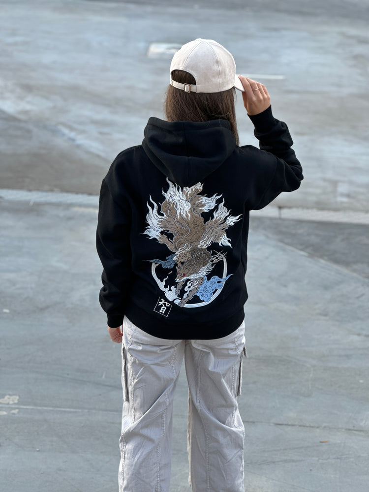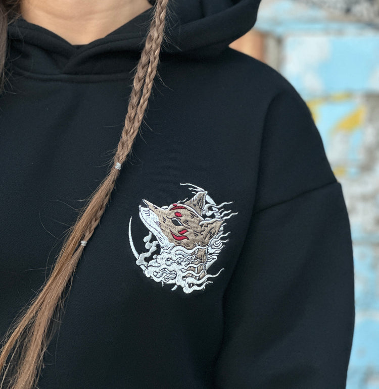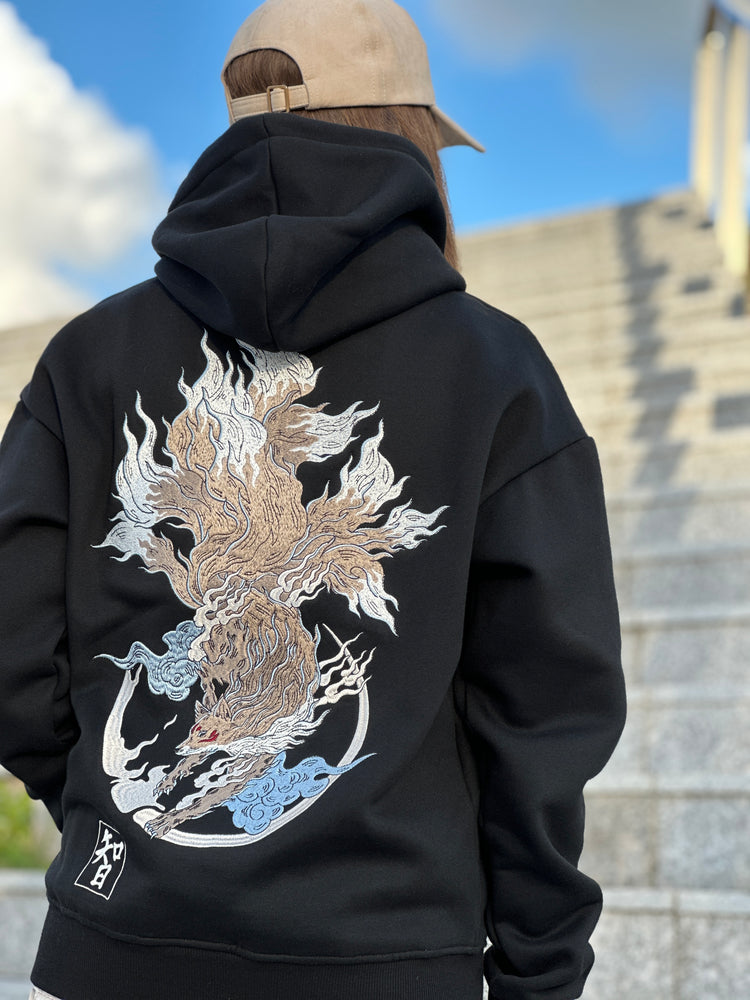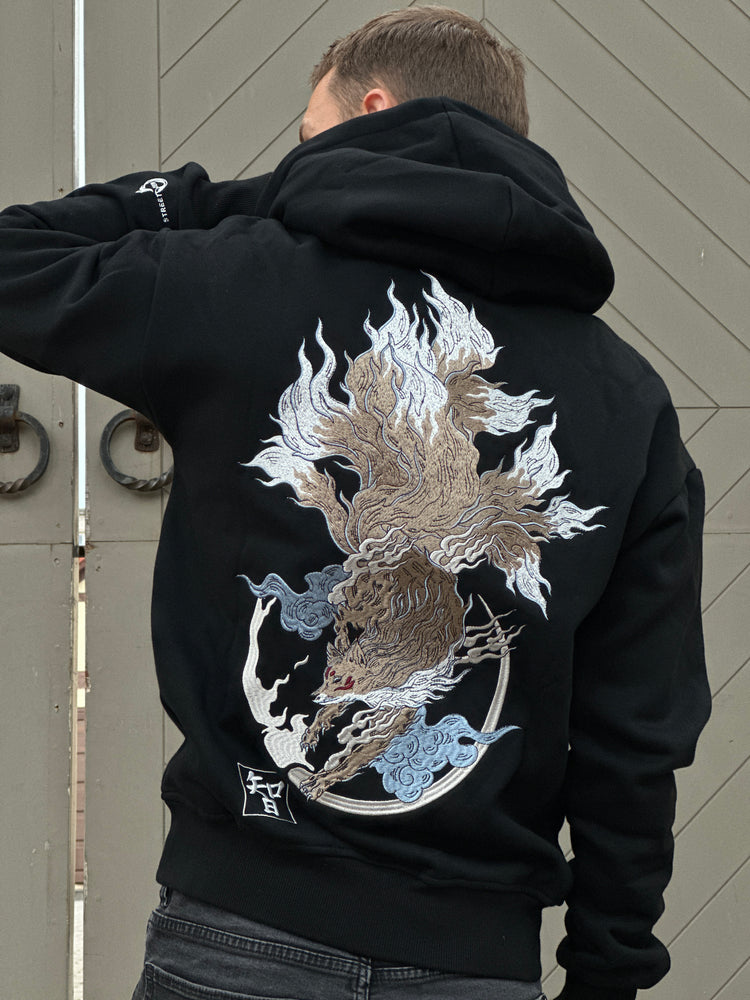 Heavy Embroidery Japanese Kitsune Fox Hoodie 400GSM