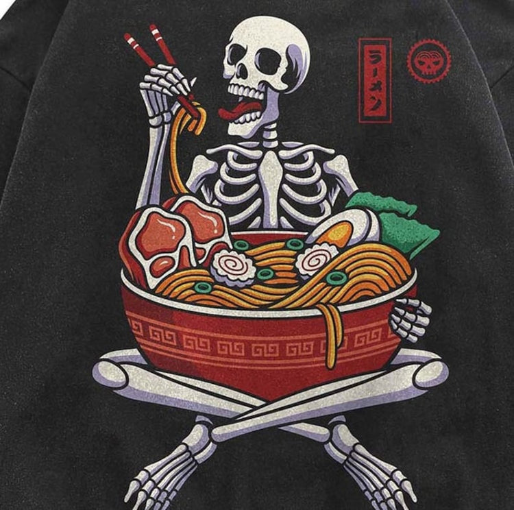 Ramen Noodles Skeleton Oversized Washed Cotton Hoodie