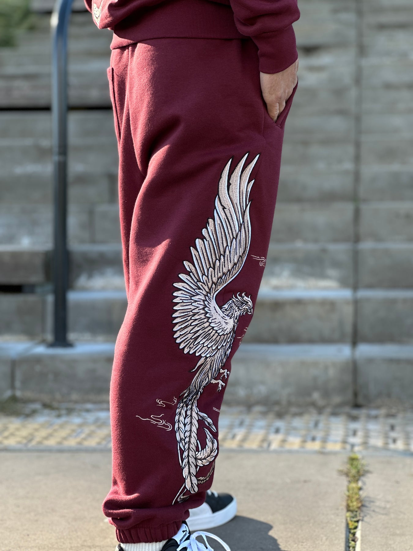 (PRE-ORDER) Heavy Embroidery White Gold Phoenix Sweatpants 400GSM