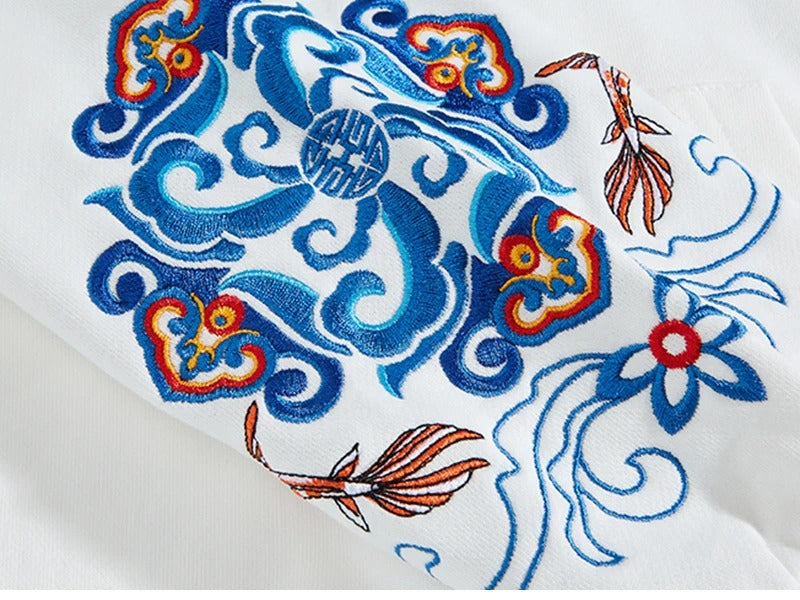 Bestickter Kapuzenpullover aus Baumwolle im Ethno-Stil