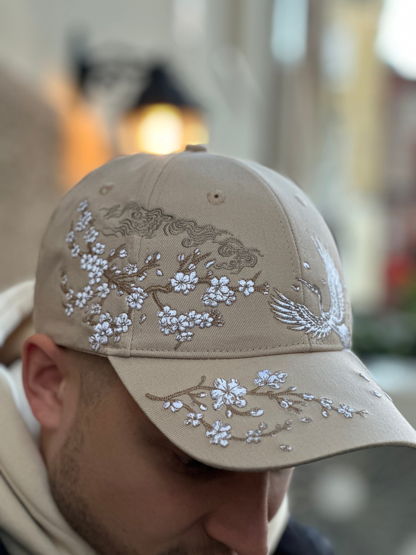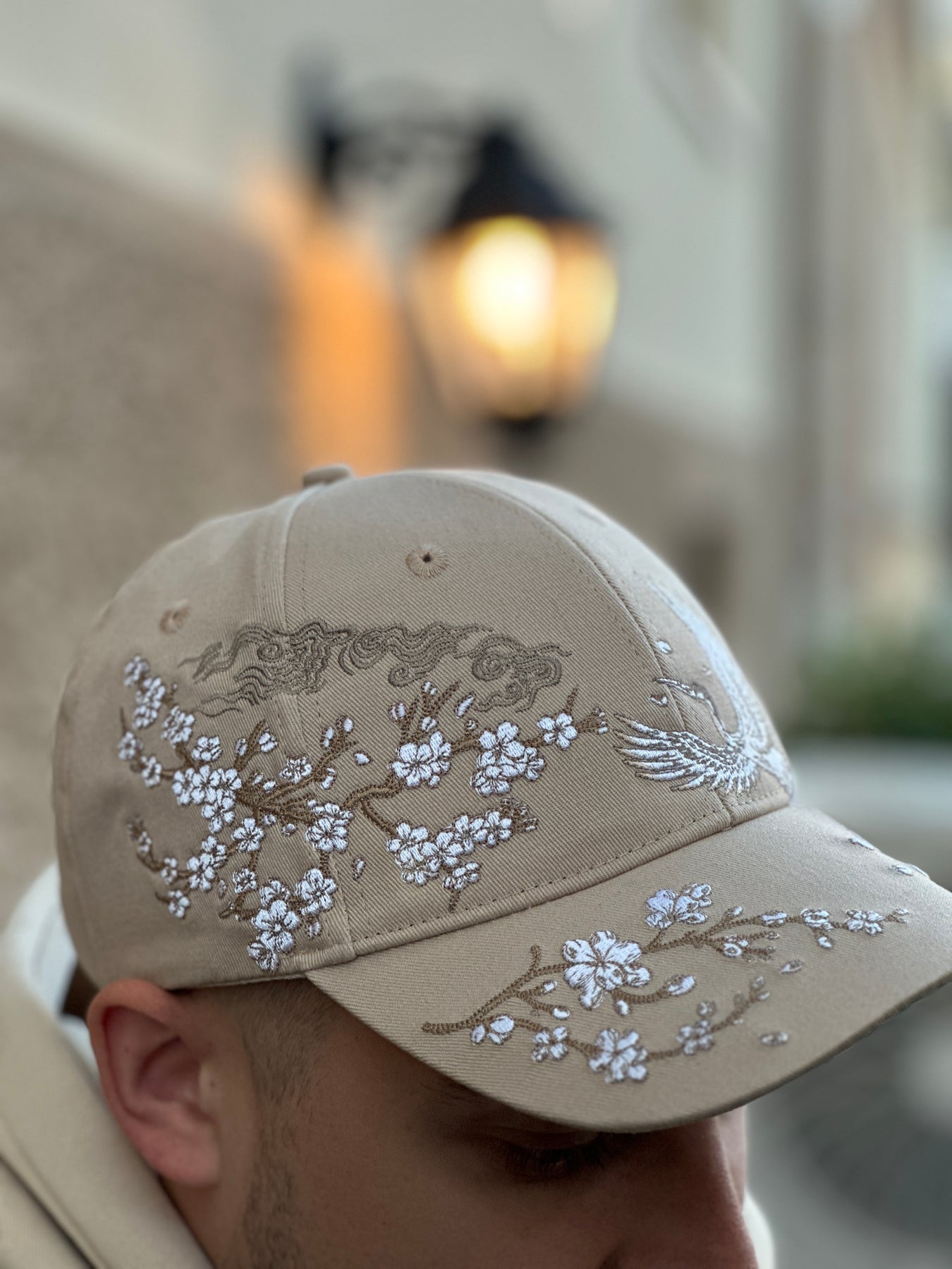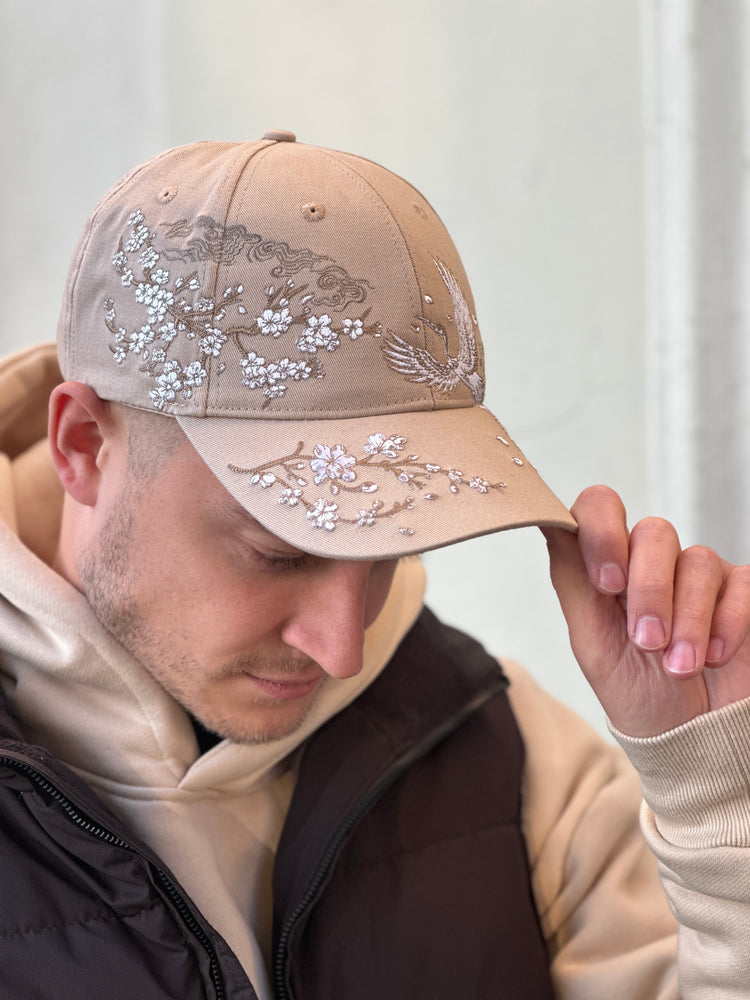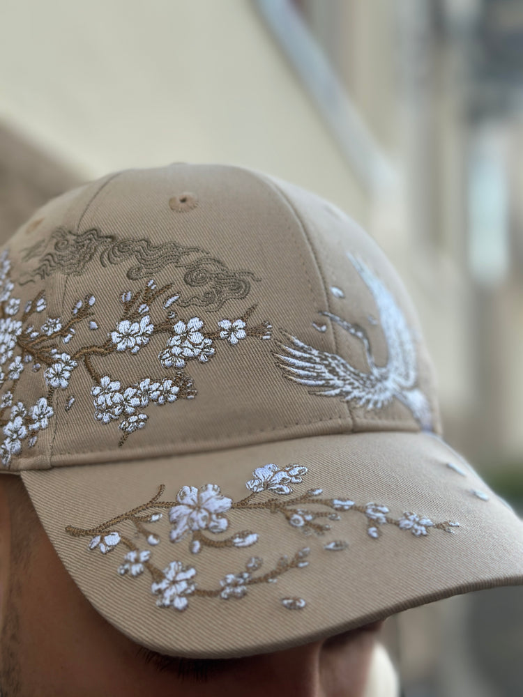 Sakura Crane Embroidered Cap - Unisex - Sakura Sand